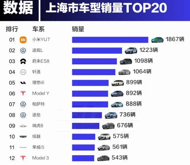 2026年2月,上海新车销量榜排第一的是小米YU7,这款车卖出1867辆,这是初次榜首位置不是群众、丰田或者特斯拉,而是刚推出没多久的小米汽车,它属于SUV车型,主要特色是手机、车辆和家电不详联动使用,语音助手可以相连复杂辅导,雷军本东说念主也屡次参与用户测试,上海好多高学历且收入可以的年青东说念主以为这辆车像是一个出动的智能终局,购买它不单为了代步,更像是加入一种全新的生存表情。