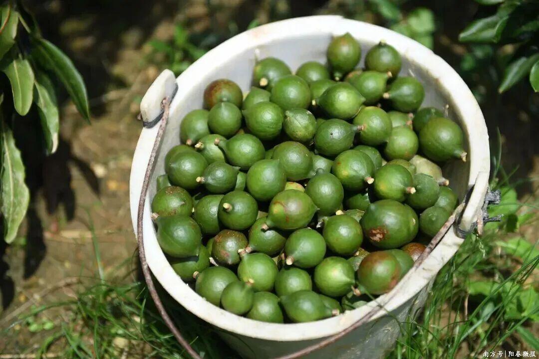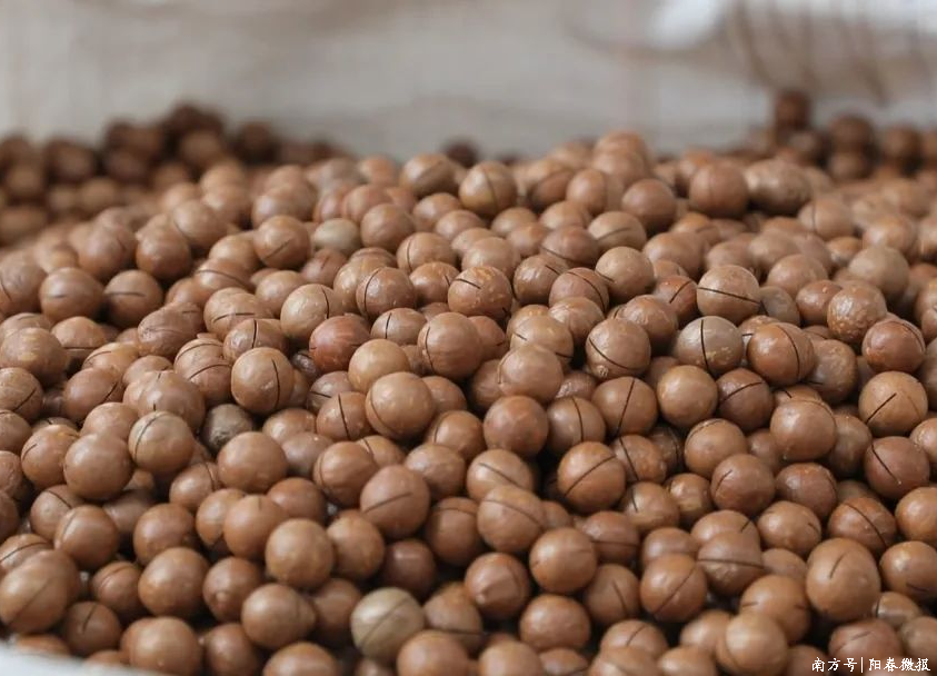如今,阳春稳稳占据广东第一大夏威夷果产地的地位,栽培限制占全省或者以上。十五年深耕细作,阳春市结束了从稀罕引种到栽培面积、鲜果产量双料全省第一的丽都回身,让这颗小坚果成为乡村振兴的“金果果”。