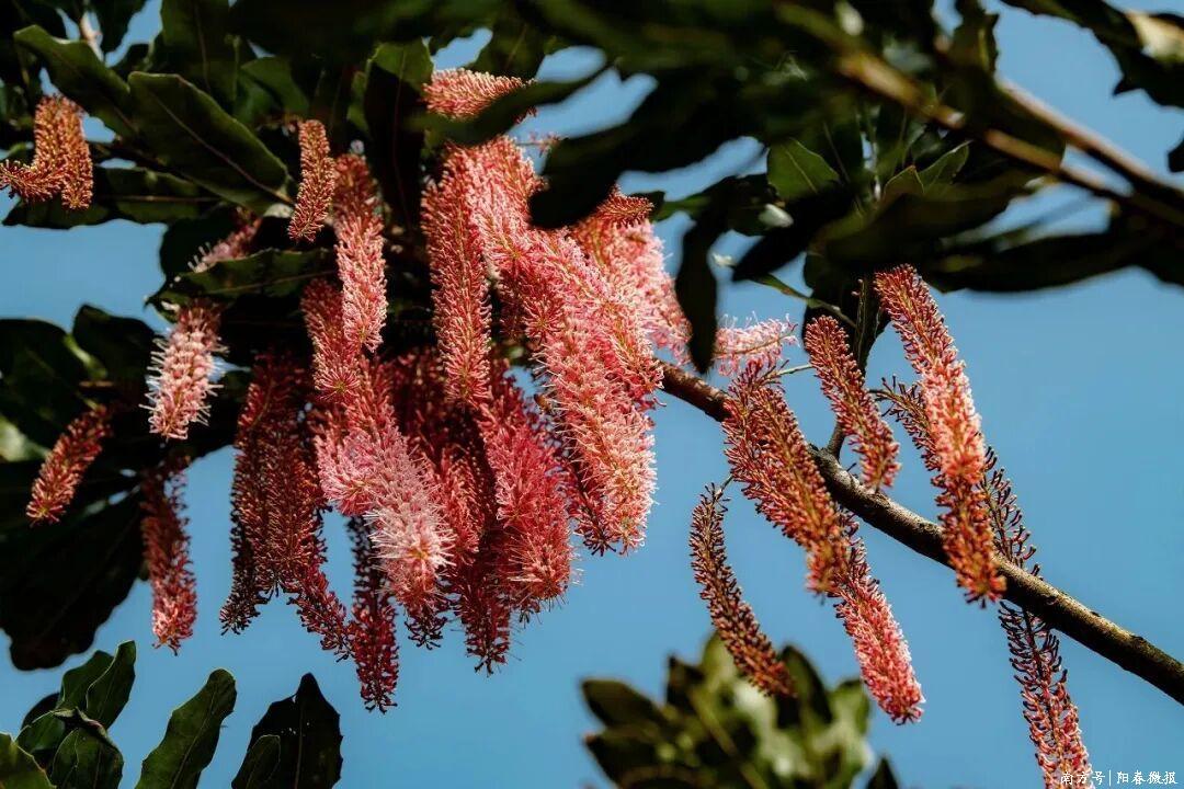 拿起夏威夷果,大宗东谈主的脑海里涌现的老是远方的国际产地,殊不知在广东阳春的山野间,近20万亩夏威夷果林正迸发出别样的期许。每年3月,漫天盖地的坚果花顺序绽开,粉、红、绿、黄、白的花串垂满枝端,汇成狂放的彩色花海,引得游东谈主滚滚无间、容身打卡。谁能念念到,这颗远谈而来的“洋坚果”,在阳春东谈主的用心培育着落地生根、吐花放手。