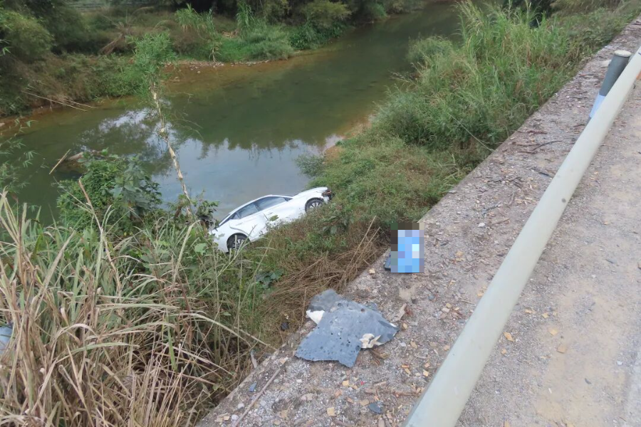 kaiyun sports 危!!超车失控撞翻电动车,小车险坠水潭……