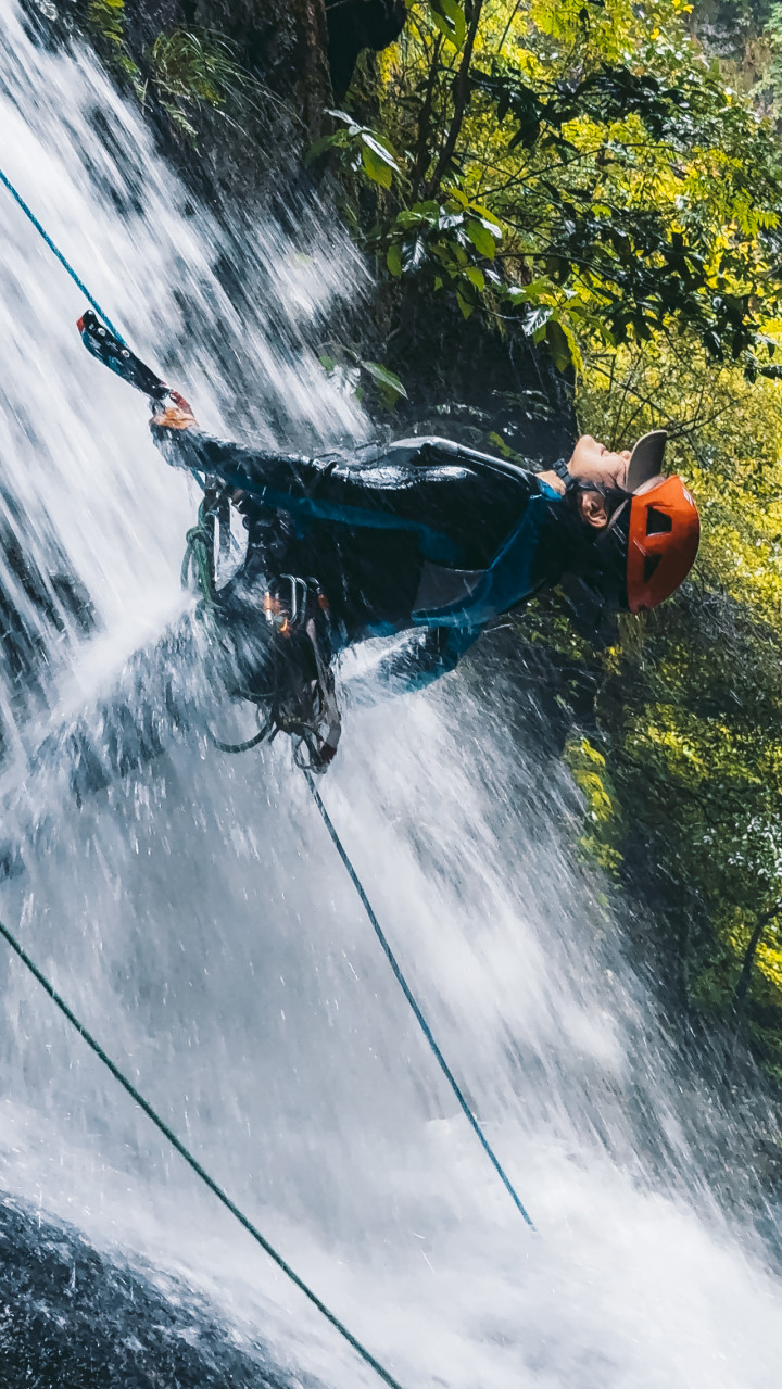 瀑步索降。