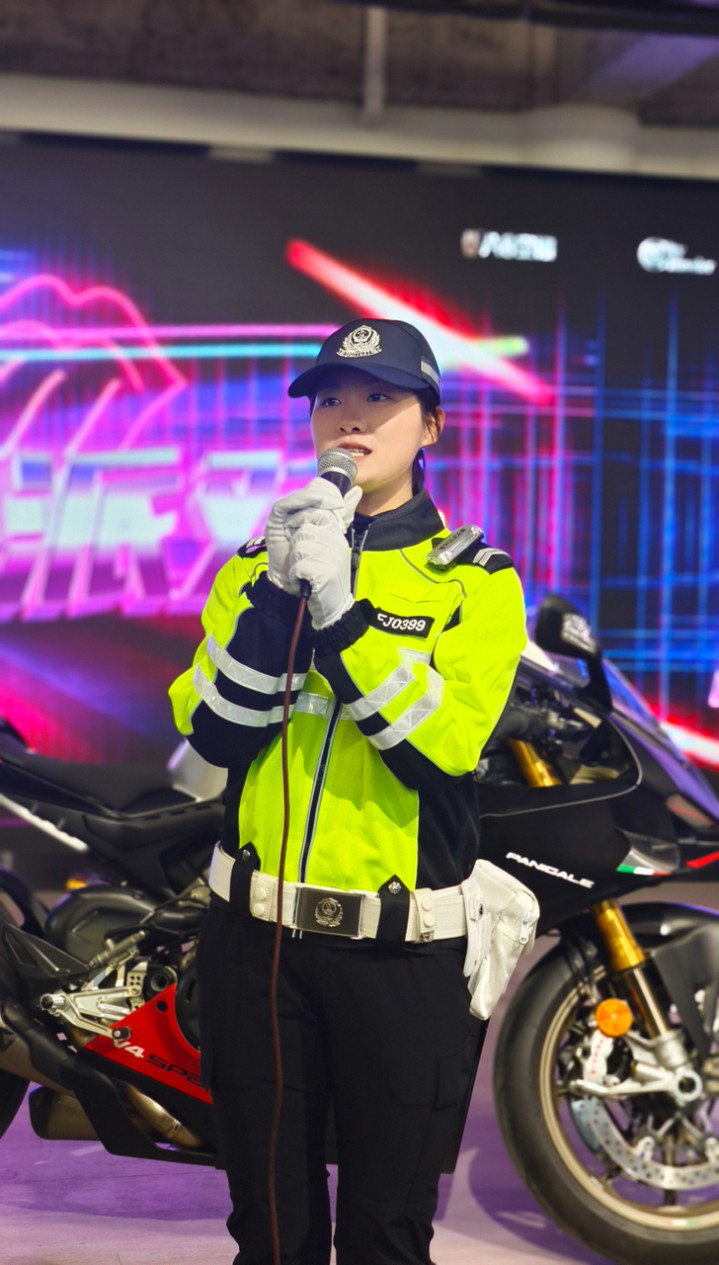 凭着一股不屈输的韧劲,她奏凯通过一说念考查。2025年全市交警铁骑技能比武中,施畅念念拿下女子组第三名,成为名副其实的“铁骑金花”。