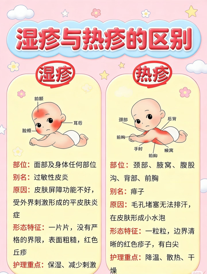 · 热疹:脖子、腋窝、后背、大腿根——专挑爱出汗的地点