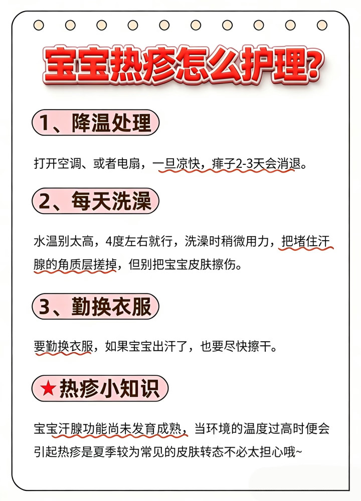 热疹照管:降温!散热!保持干爽!