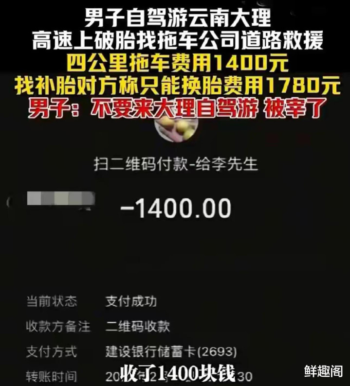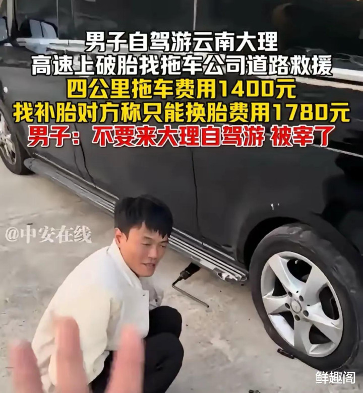 开云体育官方网站 男人大理自驾游被宰到破防! 4公里拖车1400元, 换胎要1780元, 宣称“千万别来”