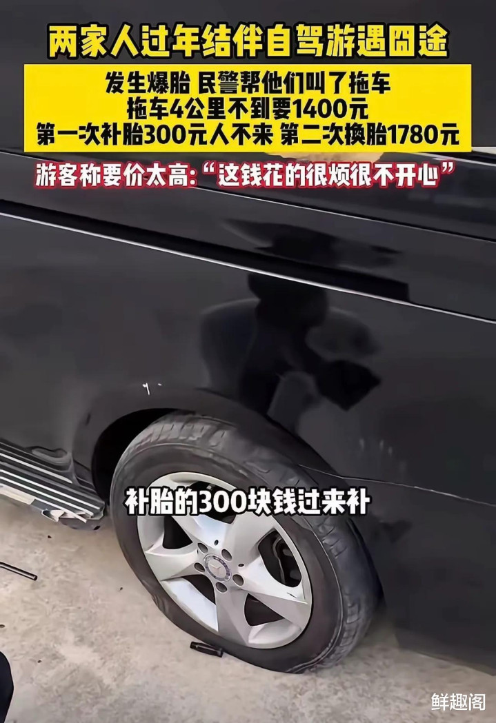 短短4公里的拖车路程,居然被索求1400元,随后更换一个商场价仅三百余元的轮胎,也被报价1780元,这趟“东说念主在囧途”不仅掏空了钱包,更寒了陈先生的心。